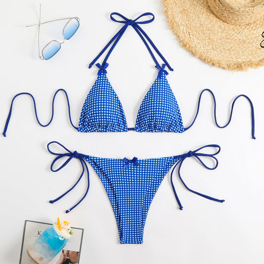 P&B - Summer Plaid Tie Back Bikini - Blue Gingham